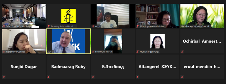Монголын Эмнести Интернэшнл ТББ-аас /2020.12.11/ зохион байгуулсан “Эмч, эмнэлгийн ажилтан, зайлшгүй шаардлагатай ажилтны эрх” сэдэвт уулзалтад Хүний Эрхийн Үндэсний комиссын гишүүд оролцлоо.