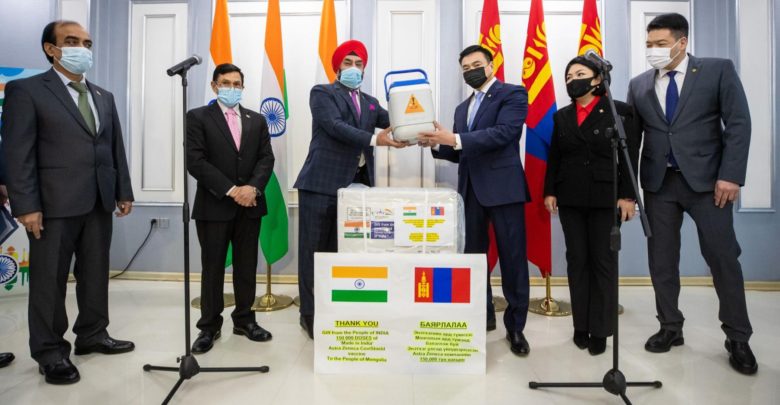 БНЭУ-аас Монгол Улсад суугаа Элчин сайд М.Сингх вакцины дээжийг Монгол Улсын Шадар сайд, Улсын онцгой комиссын дарга С.Амарсайханд хүлээлгэн өгсний дараа ХӨСҮТ-ийн Вакцин биобэлдмэлийн төв агуулах руу зөөвөрлөв. Монгол Улсын Засгийн газар эхний ээлжинд эрсдэлтэй нөхцөлд ажиллаж байгаа эрүүл мэнд, онцгой байдал, цагдаа зэрэг байгууллагын ажилтан, алба хаагчид болон өндөр настай, суурь өвчтэй иргэдээ вакцинд хамруулах юм. Маргааш буюу 2021 оны 02 дугаар сарын 23-ны өдөр Бүх нийтийн бэлэн байдлын зэргийг цуцлахтай зэрэгцэн вакцинжуулалт эхэлнэ.