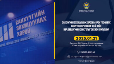 Санхүүгийн зохицуулах хорооны орон тооны бус гишүүнд нэр дэвшигчтэй хийх нэр дэвшигчийн сонсголыг Улсын Их Хурлын Төсвийн байнгын хороо 2025 оны 01…