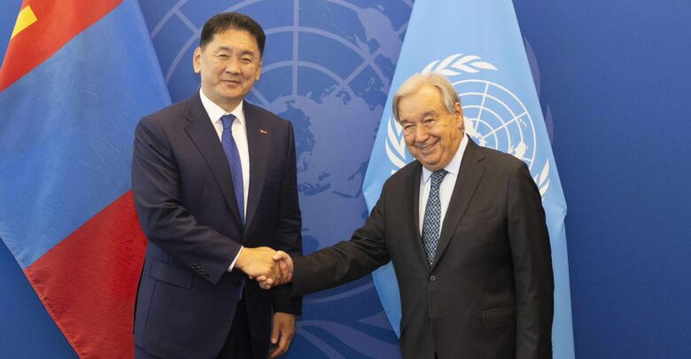 Монгол Улсын Ерөнхийлөгч У.Хүрэлсүх 2025 оны 09 дүгээр сарын 23-ны өдөр НҮБ-ын Ерөнхий нарийн бичгийн дарга Антонио Гутеррештэй НҮБ-ын Төв байранд уулзав.