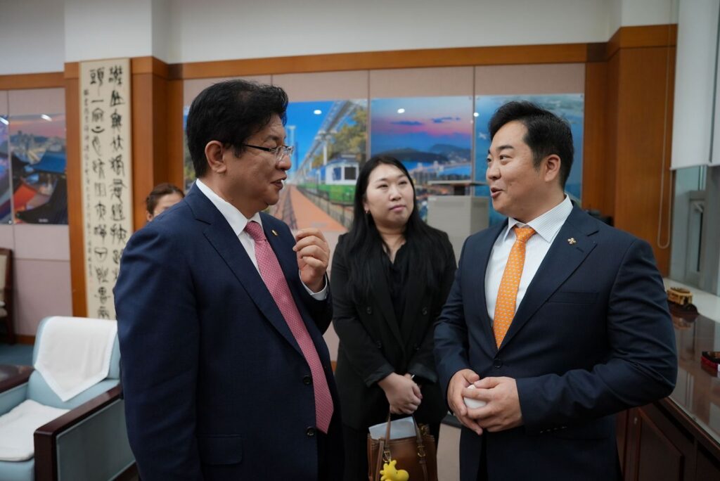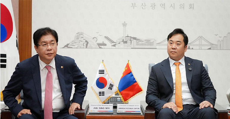 НИТХ-ын дарга А.Баярын Пусан хотод хийж буй ажлын айлчлал нутгийн өөрөө удирдах дээд байгууллага, Пусаны иргэдийн төлөөлөгчдийн хурлын танхимд үргэлжиллээ. Пусаны ИТХ-ын дарга Ahn Sung‑Min болон төлөөлөгч, Ажлын албаныхан манай айлчлалын баг бүрэлдэхүүнийг хүлээн авч уулзан, халуун дотно, ажил хэрэгч яриа өрнүүллээ.
