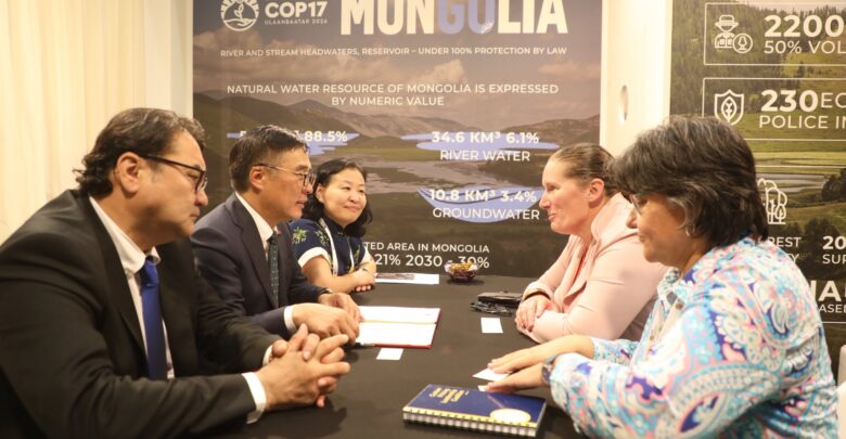 БОУАӨ-ийн сайд бөгөөд COP17-ын Үндэсний хорооны дарга Б.Батбаатар , COP17-ын Ажлын албаны дарга Д.Батмөнх нар Дэлхийн банкны Уур амьсгалын өөрчлөлтийн асуудал хариуцсан дарга Валериа Хиккейтэй ирэх оны 8 дугаар сарын 17-28-ны өдрүүдэд Улаанбаатар хотноо зохион байгуулагдах Цөлжилттэй тэмцэх тухай НҮБ-ын конвенцын Талуудын 17 дугаар бага хурлын бэлтгэл ажлын хүрээнд уулзалт хийлээ.