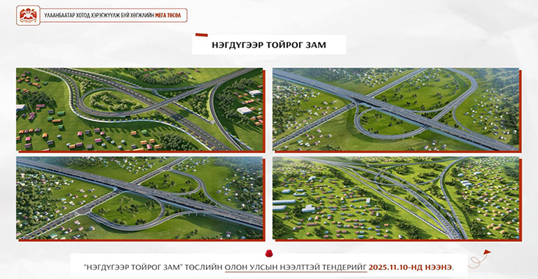 2025-2028 он хүртэл хэрэгжүүлэх мега төслүүдийн нэг болох “Нэгдүгээр тойрог зам” төслийн гүйцэтгэгчийг сонгон шалгаруулах олон улсын нээлттэй тендэрийг зарлаад буй. Тодруулбал, тус тендерийг түлхүүр гардуулах нөхцөлтэй, санхүүжилттэй хамтарсан буюу EPC+F (Engineering, Procurement, Construction and Financing) хэлбэрээр зарласан юм.