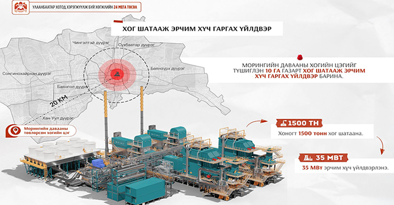 Төр, хувийн хэвшлийн түншлэлийн тухай хуулиар Монгол Улсын хэмжээнд анх удаа хэрэгжих томоохон бүтээн байгуулалтын нэг “Хог шатааж эрчим хүч гаргах үйлдвэр” барих түншлэлийн гэрээг өнгөрөгч сард байгуулсан. Төслийн гүйцэтгэгчээр Рэншоу Сычуань эрчим хүчний хөрөнгө оруулалт, байгаль орчныг хамгаалах ХХК шалгарсан юм. Өдөрт 1500 тонн хог шатаах хүчин чадалтай үйлдвэрийг Хан-Уул дүүргийн 12 дугаар хороо, Морингийн даваанд 10 га газарт барих хөрөнгө оруулалтын хэмжээ 206.5 сая ам.доллар байх бөгөөд бүтээн байгуулалтыг 30 сарын хугацаанд гүйцэтгэж, 28 жилийн дараа төрд шилжүүлнэ. Тус үйлдвэр нь жилд 8000 цаг ажиллаж, 35 МВт хүчин чадал бүхий цахилгаан эрчим хүч түгээнэ.