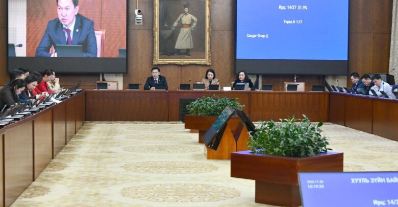 Улсын Их Хурлын Хууль зүйн байнгын хорооны өнөөдрийн (2025.11.28) хуралдаан 09 цаг 58 минутад гишүүдийн 51.9 хувийн ирцтэйгээр эхэлж, Үндсэн хуулийн цэцийн гишүүнийг үүрэгт ажлаас нь чөлөөлөх тухай асуудлыг хэлэлцэн шийдвэрлэв. Тус хуралдааныг Улсын Их Хурлын гишүүн О.Номинчимэг даргаллаа.