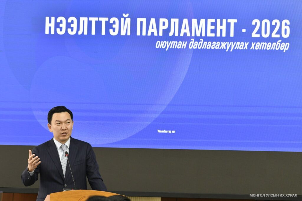 Монгол Улсын Их Хурал, түүний Тамгын газрын ил тод, нээлттэй байдлыг нэмэгдүүлэх, парламентын боловсролыг түгээж, төрийн үйл хэрэгт оролцох иргэдийн оролцоог идэвхжүүлэх зорилтын хүрээнд “Нээлттэй парламент” цогц арга хэмжээний 2026 оны хөтөлбөрийг өчигдрөөс албан ёсоор эхлүүлээд байна. Энэхүү цогц арга хэмжээний хүрээнд сургагч багшийн, мэтгэлцэх урлагийн, ерөнхий боловсролын сургуулийн сурагчдын зэрэг олон үйл ажиллагааг хэрэгжүүлж байгаагийн нэг нь магадлан итгэмжлэгдсэн их сургууль, коллежийн бакалаврын хоёр, гурав, дөрөвдүгээр ангийнхныг хамруулдаг “Нээлттэй парламент” оюутны дадлагажих хөтөлбөр юм. Хоёр дахь жилдээ үргэлжилж буй тус хөтөлбөрийн энэ оны үйл ажиллагааны нээлт өнөөдөр /2026.03.11/ боллоо.