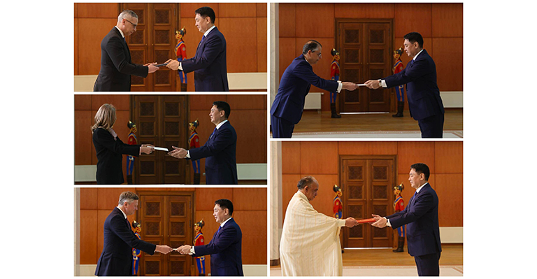 Монгол Улсын Ерөнхийлөгч Ухнаагийн Хүрэлсүхэд гадаадын орнуудаас Монгол Улсад хавсран суух Элчин сайдууд Итгэмжлэх жуух бичгээ өргөн барилаа.