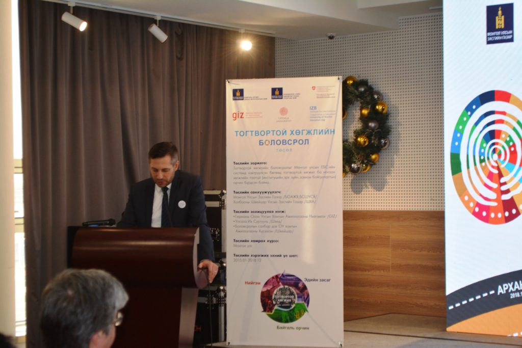 Швейцарийн хөгжлийн агентлагийн дэд захирал Тогтвортой хөгжлийн боловсрол төслийн удирдах хорооны гишүүн Илария Дали: “Монгол улс Тогтвортой хөгжлийн зорилтуудыг хэрэгжүүлэхдээ стратеги төлөвлөгөө гаргасан. Тэр нь тогтвортой хөгжлийн боловсрол гэдэг үйл ажиллагааг сургуулийн нөхцөл байдалд ялангуяа бага сургуулиас дээд сургууль гээд бүхий л түвшинд хэрхэн оновчтой төлөвлөж хэрэгжүүлэх вэ гэдэгт анхаарсан.