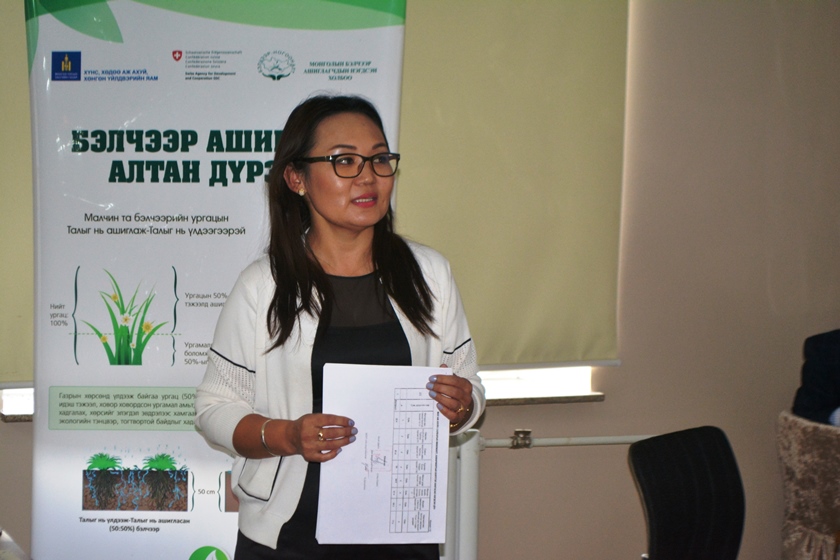 Нөгөө талаар дэлхийн дулааралтай холбоотой байгаль цаг уурын өөрчлөлт тус аймагт нөлөөлж байна. Иймд мал аж ахуйн суурь болсон бэлчээрийн асуудлыг ярьж, түүнийг хэрхэн зөв зохистой ашиглах тухай асуудлыг хэлэлцэж, Дундговь аймгийн Бэлчээр ашиглах журам гаргах зайлшгүй шаардлага бий болж байна. Иймд ШХА-ын Ногоон алт малыйн эрүүл мэнд төсөл хэрэгжиж байгаа 5 сум төдийгүй бусад сумдын бэлчээрийн өнөөгийн төлөв, нөхцөл байдал ямар байгаа талаар ярилцаж, аймгийн онцлогт тохирсон Бэлчээр ашиглах журам боловсруулахад та бүхний оролцоо чухал үүрэгтэй” хэмээн онцолсон юм.