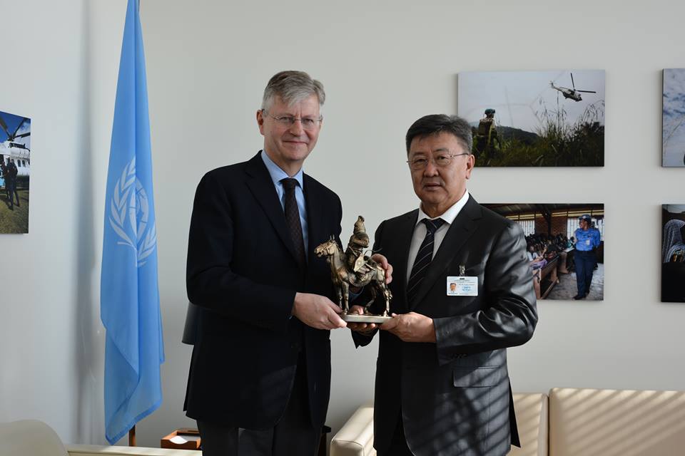 УИХ-ын гишүүн, Батлан хамгаалахын сайд Н.Энхболд энэ сарын 27-29-нд НҮБ-ын Энхийг сахиулах ажиллагаанд цэрэг илгээгч орнуудын Батлан хамгаалахын сайд нарын Бага хуралд оролцож байна. Эхний өдөр НҮБ-ын Ерөнхий нарийн бичгийн дарга ноён Антонио Гутерреш болон НҮБ-ын Ерөнхий нарийн бичгийн даргын Энхийг сахиулах ажиллагааны асуудал хариуцсан орлогч дарга ноён Жан Пьерр Лакроутай нартай уулзаж Монгол Улсын энхийг сахиулах ажиллагаа цаашдын чиглэл, байр суурийг талаар харилцан ярилцав.