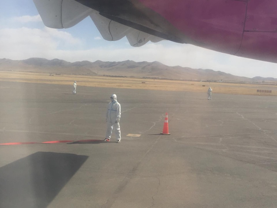 Тус агаарын хөлөгт Баян-Өлгий аймгаас 11, Ховд аймгаас 47, нийт 58 зорчигч зорчиж ирсэн байна. Халдварт өвчин судлалын үндэсний төв, Хилийн мэргэжлийн хяналтаас бүрдсэн тусгай баг зорчигчдод үзлэг хийж эхэлсэн бөгөөд Өлгий нисэх буудлаас ирсэн зорчигчдыг тусгаарлан эмнэлэгт хүргэнэ. Харин Ховд аймгаас ирсэн зорчигчдыг Буянт-Ухаа спорт цогцолборт тусгаарлан нарийн үзлэг хийх юм байна.