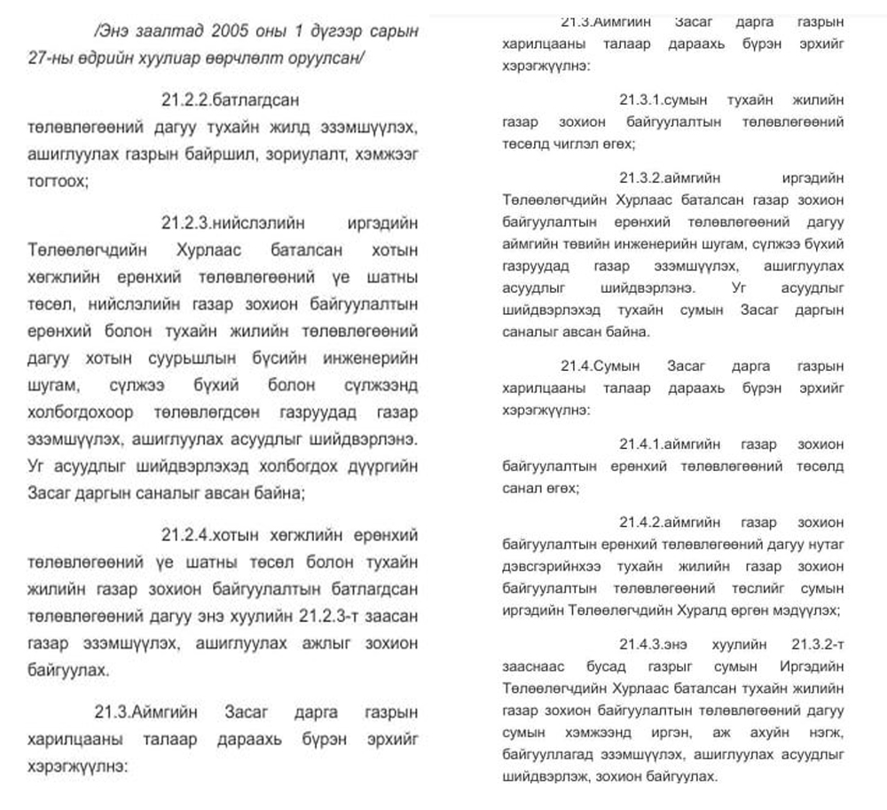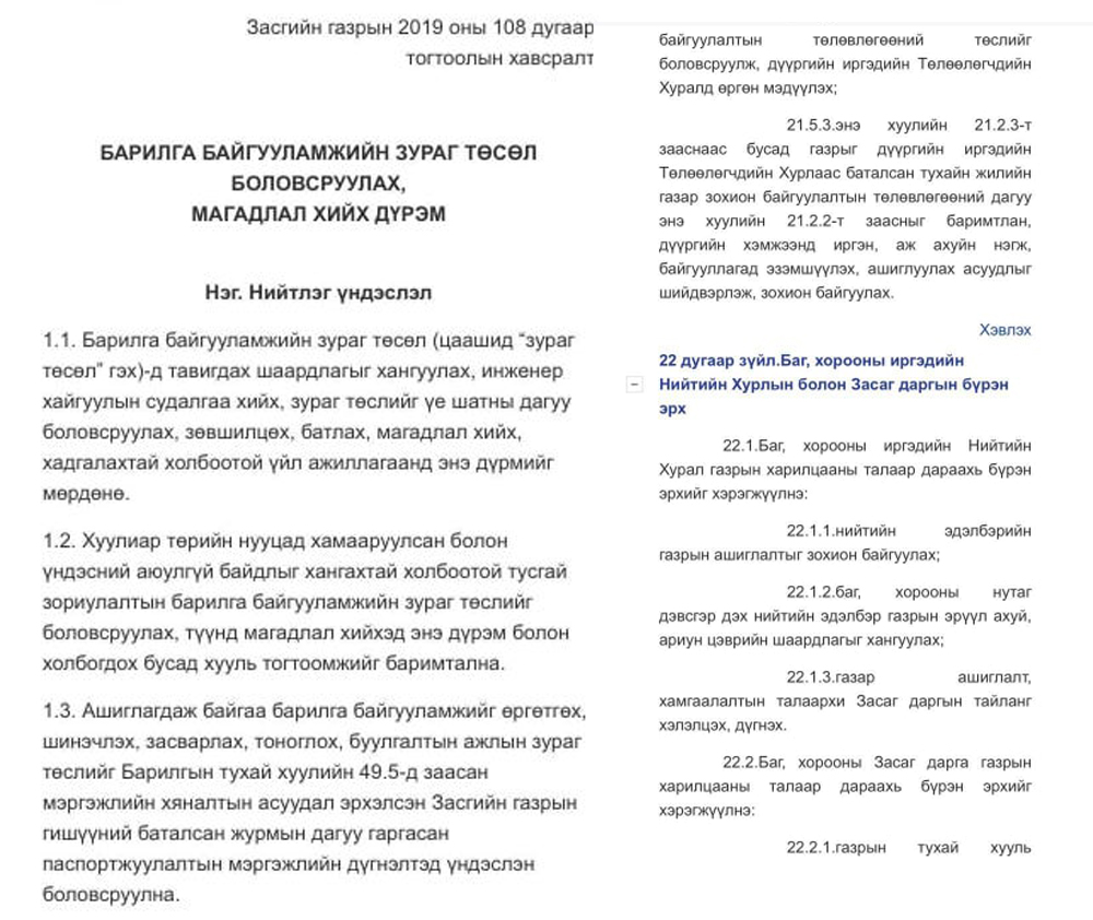 Улмаар Дархан –Уул аймгийн Газрын харилцаа, Барилга хот байгуулалтын газраас 2017 оны 10 дугаар сарын 24-ны өдрийн албан бичгээр тус багийн иргэдэд гаргасан шийдвэрээ танилцуулж байжээ.