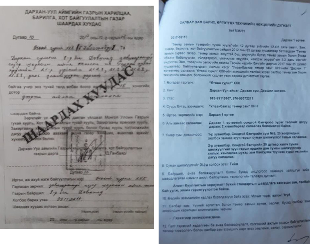 Дархан-Уул аймгийн Дархан суманд иргэдийн оршин суух, эрүүл аюулгүй орчинд амьдрах эрх зөрчигдөж байгаа тадлаар манай сайтад мэдээлэл ирлээ. Тодруулбал, 2017 оны 09 дүгээр сард Дархан-Уул аймгийн Дархан сумын 8 дугаар баг дэвшилд “Өгөөж гурил” ХХК нь Дархан-1 өртөөнөөс салаалж, 477 км урттай төмөр зам барих ажил эхлүүлсэн бөгөөд тухайн үед иргэд оршин суугчид эсэргүүцлээ илэрхийлж, орон нутгийн удирдлагууддаа хандаж асуудлыг шийдүүлж байжээ.