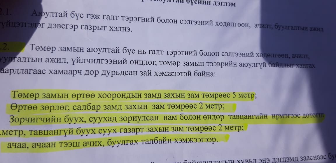 Дархан-Уул аймгийн холбогдох албаныхан иргэдийн гомдлын өгсөн мэдээллийн дагуу шалгалт хийж, “Өгөөж гурил” ХХК ний төмөр зам барих ажил нь Монгол Улсын Засгийн газрын 2009 оны 204 дүгээр тогтоолын барилга байгууламжийн зураг төсөл боловсруулах, зөвшилцөх, магадлал хийх дүрмийн 3 дугаар зүйлийн 3.2, 3.2.1, 3.2.4 дэх заалт, 4 дүгээр зүйлийн 4.1.1 дэх заалт, Газрын тухай хуулийн 21 дүгээр зүйлийн 21.2.3, 21.3.2, 21.4.3, 21.5.3 дэх заалтуудыг тус тус зөрчиж байсан тул уг ажлыг зогсоох арга хэмжээг авсан аж.
