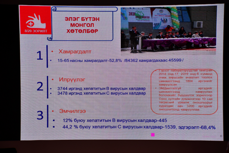 Мөн Дэлхийн банкны санхүүжилтээр сум, ӨЭМТ-үүдийг компьютержуулахаар шийдвэрлэсэн ба Хөвсгөл аймагт хамгийн түрүүнд хэрэгжиж нийт 112 ш компьютерийг хурууны хээ уншигч, иргэний үнэмлэх уншигчийн хамт хүлээн авлаа. Уулзалтын үеэр Иргэн төвтэй төрийн үйлчилгээг “Хөвсгөл аймгийн эрүүл мэндийн салбарт” илтгэлийг Эрүүл мэндийн газрын дарга М.Үүрийнбаяр танилцууллаа.