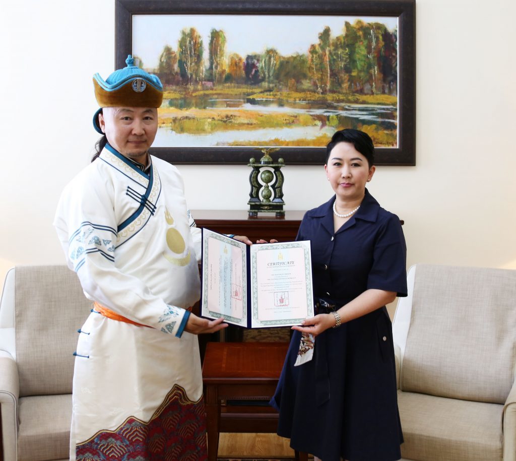 Гадаад харилцааны Дэд сайд Б.Батцэцэг өнөөдөр туульч, хуурч, хөөмийч Эрдэнэцогтын Баатаржавт Монгол Улсын Соёлын элчийн гэрчилгээг гардуулан өглөө.