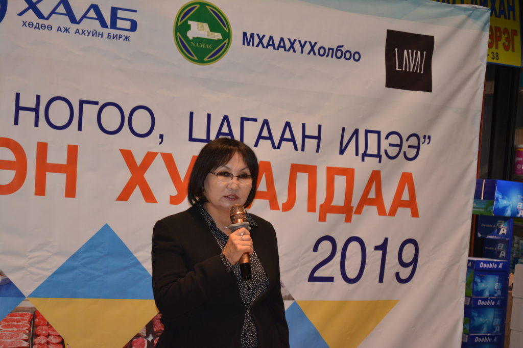 “Мах, хүнсний ногоо, цагаа идээ -2019” үзэсгэлэн худалдаанд Төв, Хэнтий, Увс, Дундговь, Баянхонгор, Архангай аймгуудын 20 гаруй хоршоо, малчид мах, хүнсний ногоо, цагаа идээ, зөгийн бал, арвайн гурил зэрэг бүтээгдэхүүнээр тус үзэсгэлэнд оролцож байна.