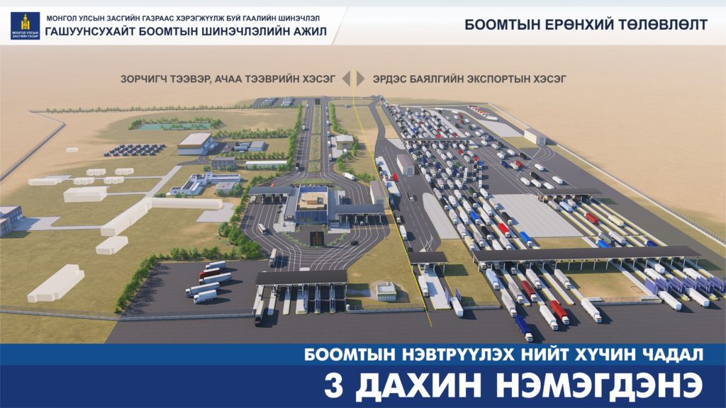 Түүний зэрэгцээ Улсын төсвийн санхүүжилтээр тээврийн хэрэгслээс дээжийн агууламж, чанарыг автоматаар тодорхойлох дэвшилтэт тоног төхөөрөмж, өндөр хүчин чадлын рентген, орчин үеийн телехяналтын систем бүхий шуурхай удирдлагын төвтэй холбогдсон тээврийн хэрэгслийг автоматаар бүртгэх ухаалаг гарцууд суурилагдана. Боомтын барилга угсралтын ажлыг 2020 оны 10 дугаар сард дуусгана.