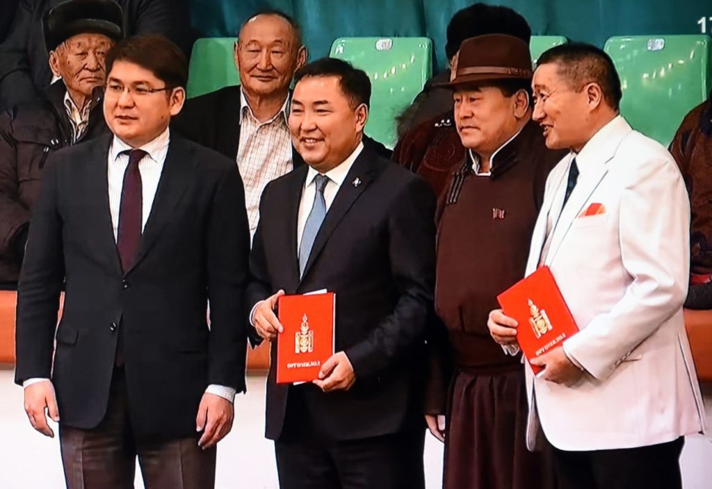 Харин тэмцээний эхний гурван байрт шалгарсан эрэгтэй, эмэгтэй шатарчдын шагнал болон Монгол Улсын спортын дэд мастерын цол, тэмдгийг Улсын Их Хурлын дарга Г.Занданшатар, Улсын Их Хурлын дэд дарга, Монголын шатрын холбооны ерөнхийлөгч Я.Санжмятав, дэд ерөнхийлөгч Ц.Эрдэнэбат, Монголын шатрын холбооны гүйцэтгэх захирал М.Ганбаатар нар Монгол бөхийн өргөөнд болсон Үндсэн хуулийн өдөрт зориулсан үндэсний бөхийн барилдааны үеэр гардуулж, баяр хүргэсэн юм. Мөн тус тэмцээнээс “Оюунлаг түшээ”-гээр тодорсон Улсын Их Хурлын гишүүн Б.Пүрэвдоржид Өргөмжлөл гардуулж, саяхан Монгол Улсын гавьяат дасгалжуулагч болсон ахмад шатарч Ж.Лхагваад хүндэтгэл үзүүлэв.