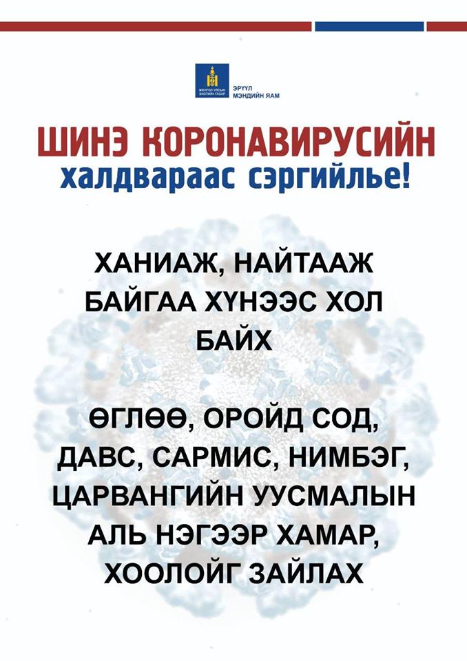 Шинэ короновирусээс урьдчилан сэргийлэх зөвлөмж