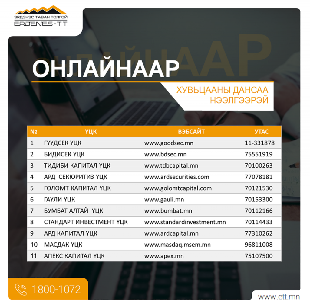 ЭТТ: Хувьцааны дансаа онлайнаар нээгээрэй