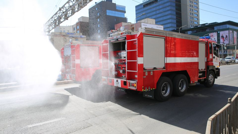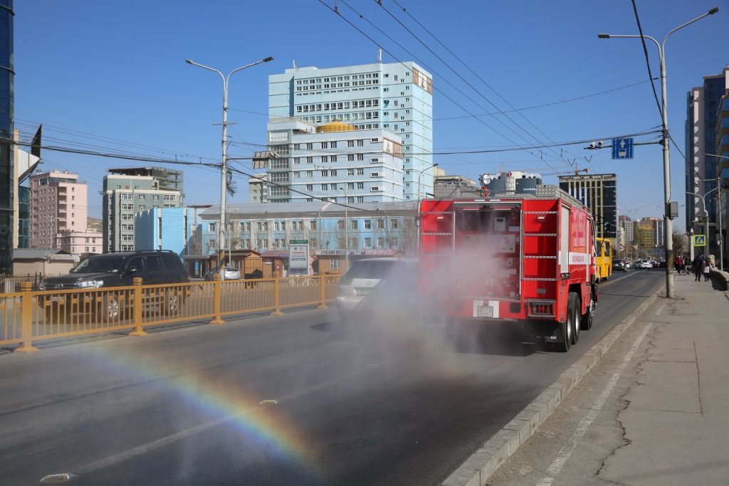 Нийслэлийн Онцгой комиссын шийдвэрээр коронавируст халдвараас урьдчилан сэргийлэх ажлын хүрээнд гал унтраах зориулалтын автомашинаар нийтийн эзэмшлийн зам талбайд ариутгал халдваргүйтгэлийн ажлыг өнгөрсөн амралтын өдрүүдэд зохион байгууллаа.