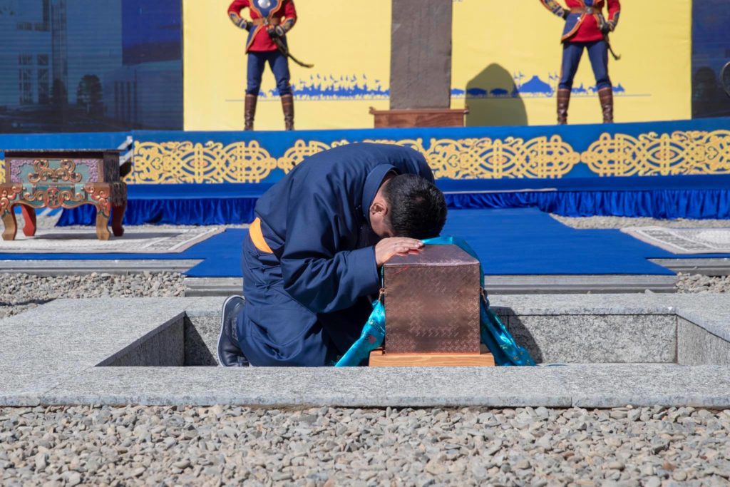 Та бид Алтайн өндөр уулсаас Дорнын уудам тал нутаг, Хөвсгөлийн их тайгаас Өмнийн шаргал говь хүртэлх Монгол нутгийнхаа Төрийн тахилгат шүтээн уулс, гол мөрнөөс сүслэн залсан ариун дагшин хөрс шороо, рашаан ус, эрдэнэс дээжсээс бүрдүүлсэн ариун шүншигийг залахад бэлэн болоод байна.