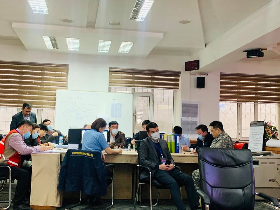 Улсын Онцгой комиссын тогтмол үйл ажиллагаа явуулж буй шуурхай штаб хуралдаж байна. Засгийн газраас өгсөн үүрэг даалгаврын талаар ОБЕГ-ын дарга, УОК-ын НБД генерал Т. Бадрал ажлын хувиарлалтаа хийж, “Нөхцөл байдал амаргүй байгааг харгалзан иргэд маскаа тогтмол зүүж, бөөгнөрөл үүсгэхгүй байх, ариун цэврээ сахих” тухай дахин чухалчилж байна.