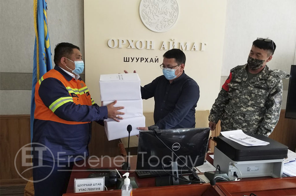 Эрдэнэт үйлдвэрийн Соёл, урлагийн цогцолборын үйлчилгээний ажилчид сэтгэл, санаачилга гарган оёсон амны хаалтыг тус цогцолборын дарга Б.Баттулга Орхон аймгийн шуурхай штабт өнөөдөр гардуулсан юм.