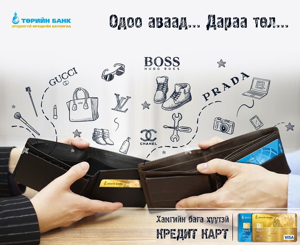 Төрийн банк хамгийн бага хүүтэй КРЕДИТ КАРТЫГ санал болгож байна.