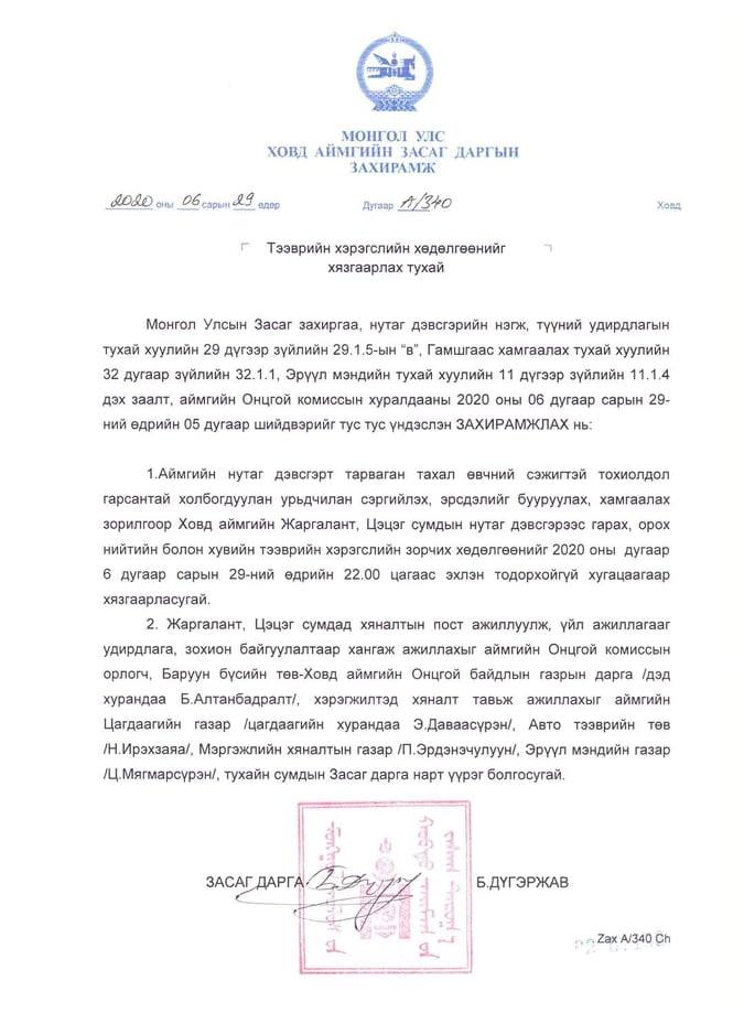 Жаргалант, Цэцэг сумдаас гарах орох хөдөлгөөнийг хязгаарлаа