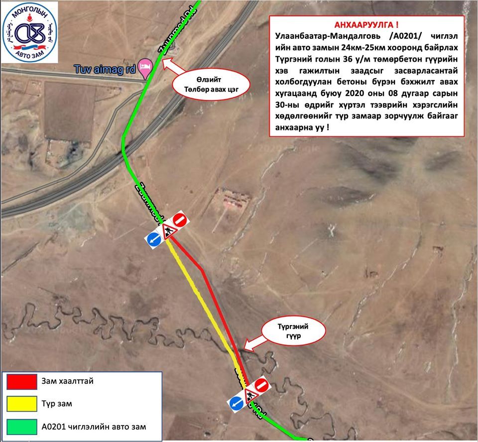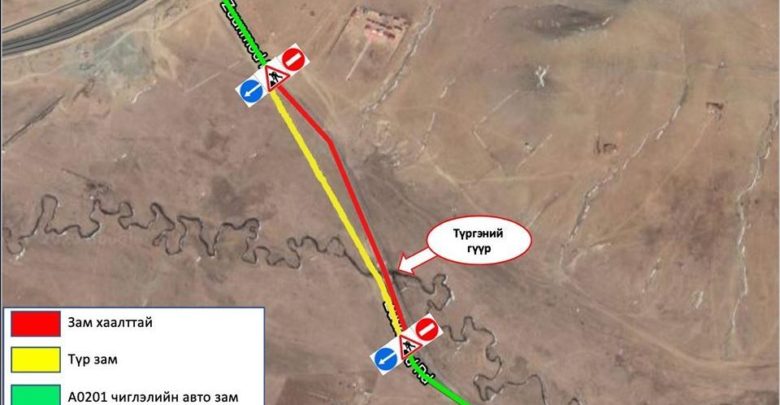 Наймдугаар сарын 30-ныг хүртэл Улаанбаатар-Мандалговь чиглэлийн 24-25 дахь км-т автомашин түр замаар зорчино