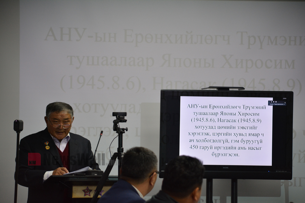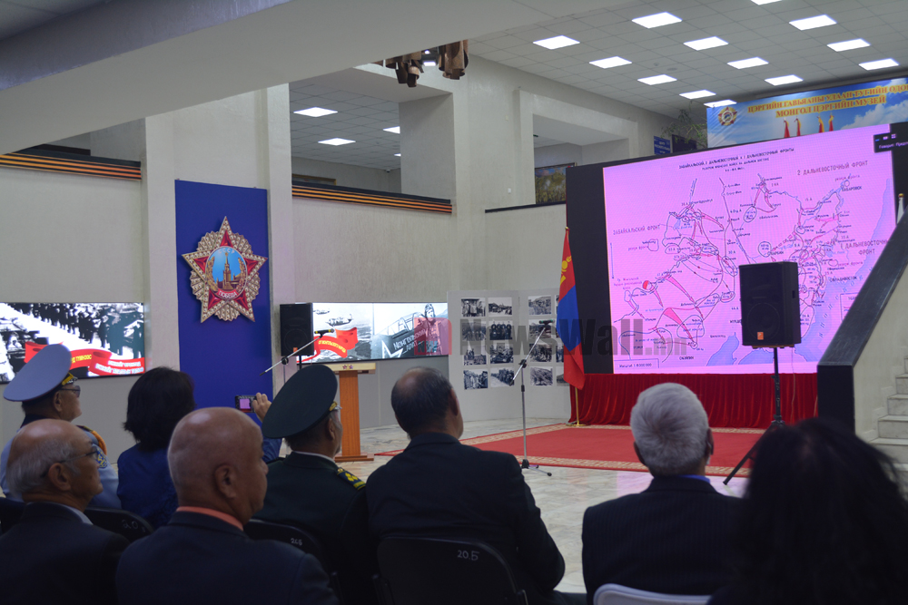 Мөн ОХУ-аас Монгол Улсад суугаа Онц бөгөөд Бүрэн эрхт Элчин сайд И.К.Азизов “Зөвлөлт болон Монголын армийн эрэлхэг цэрэг, дайчдын амжилттай давшилтын ачаар дэлхийн хоёрдугаар дайн төгсөх үр дүнд хүрсэн. Дэлхийн хоёрдугаар дайны түүхийг мушгин гуйвуулах оролдлого ихээр гарч эхэлсэн энэ үед ялалт байгуулсан цэргүүдийн арилшгүй гавьяаг мөнхжүүлэх, цаашид сурталчлах нь туйлын ач холбогдолтой” гэдгийг онцлоод хуралд оролцогсдод амжилт хүслээ.
