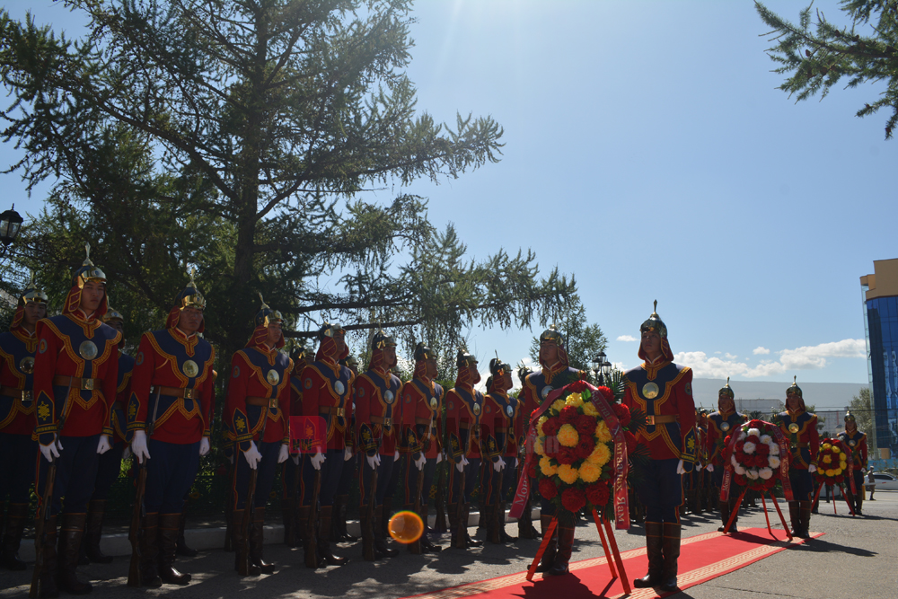 Дараа нь Батлан хамгаалахын сайд Г.Сайханбаяр, Зэвсэгт хүчний Жанжин штабын дарга, хошууч генерал Д.Ганзориг тэргүүтэй Батлан хамгаалах яам, Зэвсэгт хүчний Жанжин штабын бүрэлдэхүүн, ахмад дайчид БНМАУ-ын Гарамгай баатар Л.Дандарын хөшөөнд хүндэтгэл үзүүлж, цэцэг өргөсөн юм.