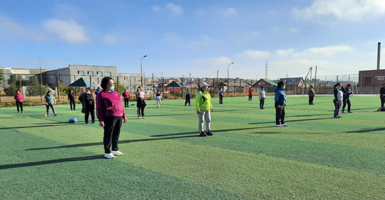 Багануур дүүрэгт 1 дүгээр хороонд байрлах хөлбөмбөгийн талбайд өглөө бүр 09:00 цагт дасгал хөдөлгөөнийг хамтдаа хийж байна.