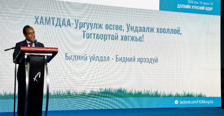 Энэ жилийн хувьд, НҮБ-ын Хүнс, хөдөө аж ахуйн байгууллага 75 жилийн ойгоо угтахын зэрэгцээ Дэлхийн Хүнсний Өдрийг дэлхий нийтийг хамарсан КОВИД-19 цар тахал, түүний үр дагаврыг даван туулахаар чармайж буй онцгой мөчид тэмдэглэж байна.