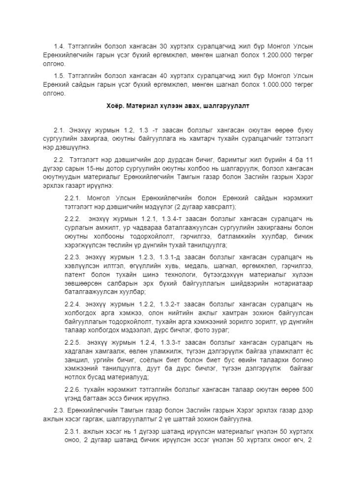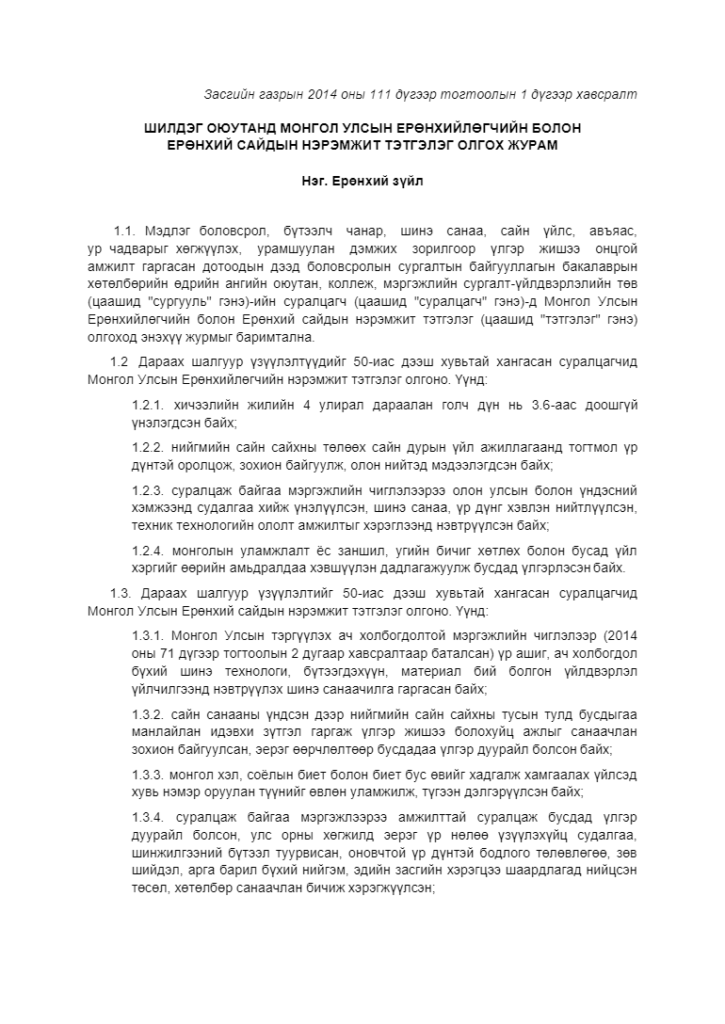 Тэтгэлгийн журамтай танилцана уу.