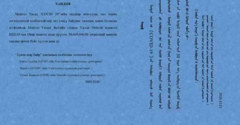 Коронавируст халдвартай тэмцэх, урьдчилан сэргийлэх үйл ажиллагаанд дэмжлэг үзүүлж иргэд, аж ахуйн, нэгж байгууллагуудаас хандив ирүүлсээр байна. Тухайлбал, Өвөрмонголын “Хуван шар байр” холбооноос 50.669.600 төгрөгийн хандивыг Улсын Онцгой комисст илгээлээ.