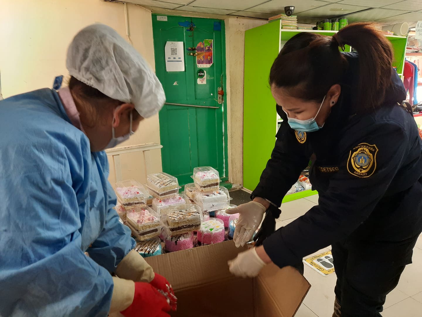 Шалгалтын явцад зай барих тэмдэг, тэмдэглэгээг шаардлагатай газарт байрлуулаагүй, улсын бүртгэлд бүртгээгүй, баталгаажилтгүй халдваргүйтгэлийн бодис ашигласан, ажлын байрны цэвэрлэгээг бохирдох тухай бүр хийдэггүй, ажлын байр, тоног төхөөрөмжийн цэвэрлэгээний хуваарь, бүртгэл хөтөлдөггүй, ажилчдын халууныг үзэж тэмдэглэл хөтөлдөггүй, хаяг шошгоны зөрчилтэй, хэрэглэх хугацаа хэтэрсэн бүтээгдэхүүн худалдсан зэрэг нийт 50 зөрчил илрүүлж, 5 зөрчлийг газар дээр нь арилгуулж, хугацаа хэтэрсэн 3 нэр төрлийн 28300 төгрөгийн бүтээгдэхүүнийг актаар хураан авч, хаяг шошгоны зөрчилтэй 1 нэрийн 62 ш 156000 төгрөгийн түргэн гэмтэх бүтээгдэхүүнийг газар дээр нь устгав.