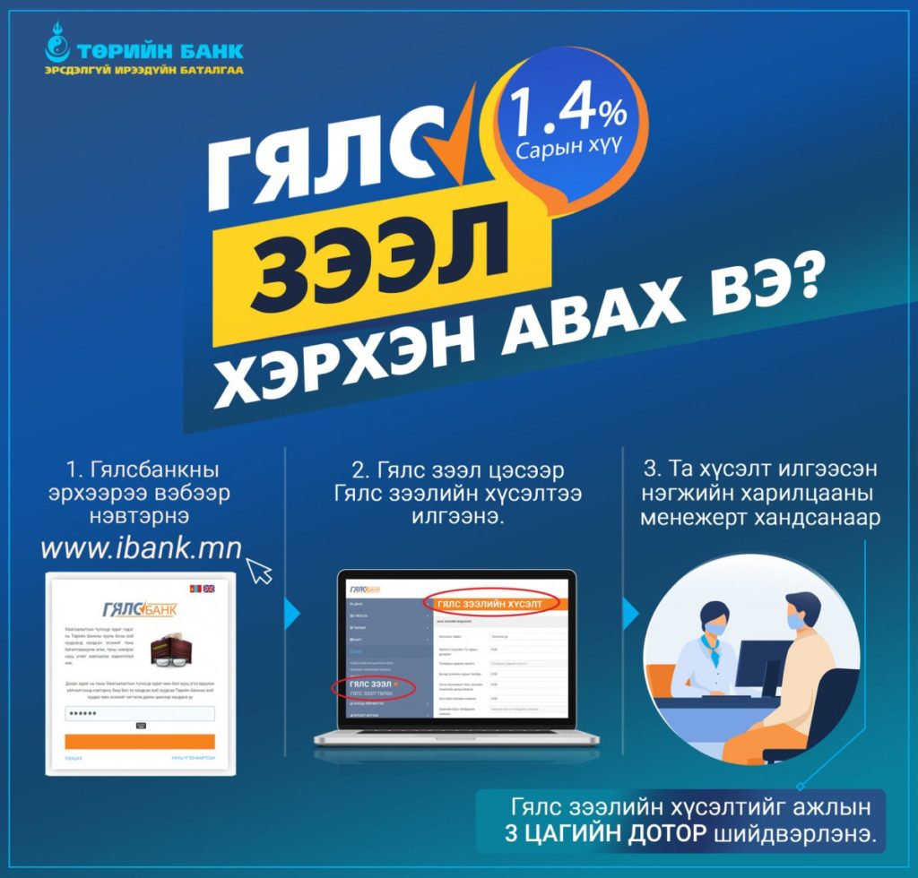 Нүүр /Focus/ТӨРИЙН БАНК: Гялс зээл хэрхэн авах вэ? FocusШинэ мэдээЭдийн засаг ТӨРИЙН БАНК: Гялс зээл хэрхэн авах вэ? Төрийн банкны Гялсбанкаа ашиглан Гялс зээлээ судлуулаарай.Stay At Home ТагТөрийн банк