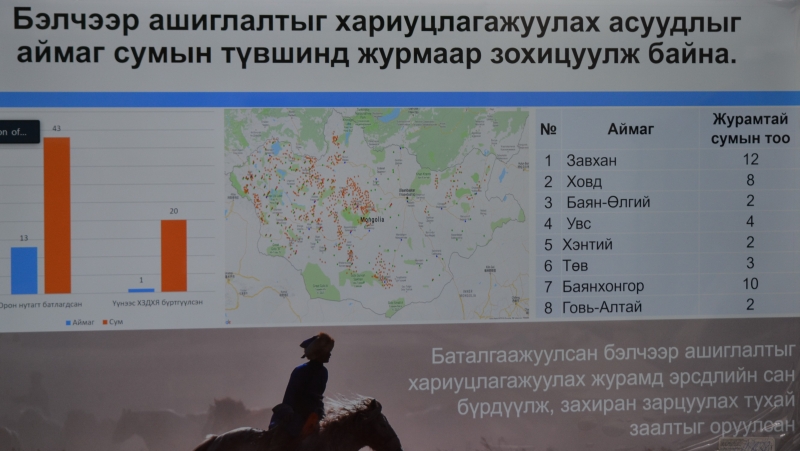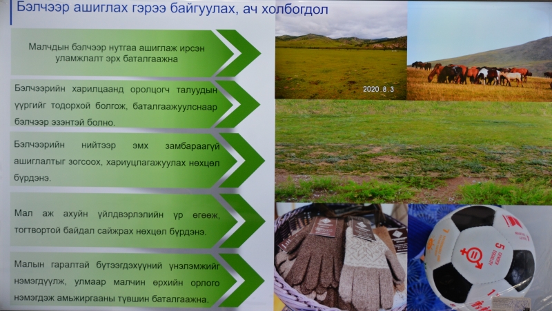 Тухайлбал, Малын тоо толгойн албан татвараар бэлчээрийн менежментийн тулгамдсан асуудлыг шийдвэрлэх, “Орон нутгийн хөгжлийн сан”-ийн эх үүсвэр болгон мал аж ахуй, бэлчээрийн менежментийн асуудлыг шийдвэрлэхэд зарцуулах, Малын тоо толгойн албан татвар тогтооход баримтлах зарчим, Татварын бодлогоор мал сүргийг өсгөх зохистой байршил, хэмжээг зохицуулах, Экологийн бүс нутаг дах зонхилох төрлийн малын уламжлалт зохистой байршлыг хадгалах, Үржлийн малын заазлалт борлуулалтын зохистой хэмжээ, Бэлчээр ашиглах төлөвлөгөө боловсруулах (Бэлчээрийг улирлаар хуваарьтай ашиглах, сэлгэж ашиглах арга технологи ногоон конвейр байгуулах, хөрсгүй тариалалт), Малын гаралтай түүхий эдийн мөшгөх тогтолцоог хөгжүүлэх, ХХААХҮЯ-ны бодлого, шийдвэр, Салбарын хүрээнд авч хэрэгжүүлж байгаа арга хэмжээ, тэргүүний туршлага зэрэг сэдвүүдээр мэдээлэл өглөө.