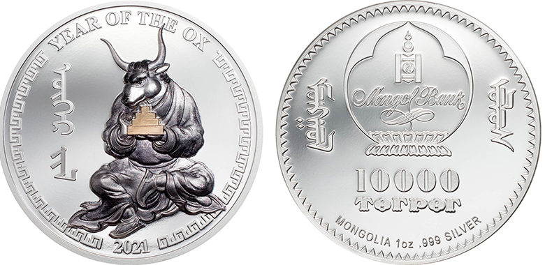 Монголбанкны Эрдэнэсийн сангаас 2021 онд Цөөвөр хэмээх цагаагчин үхэр жилд зориулан “Үхэр жил” 1 унцын 999 сорьцтой мөнгөн зоосыг худалдаанд гаргалаа. Тус дурсгалын зоосыг хамгийн сүүлийн үеийн Smartminting технологиор урлаж, хэсэгчлэн алтаар бүрсэн байна.
