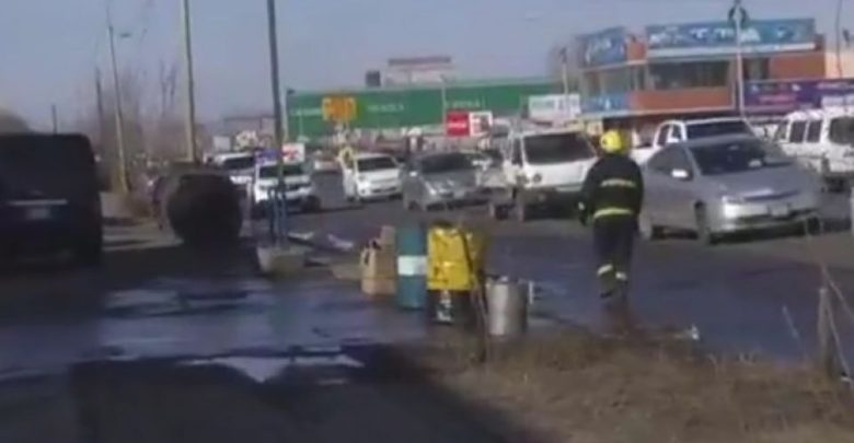 БГД-ийн 20 дугаар хороо 5 шарын “Акума” төвийн хажууд шатахуун асгарсан дуудлага өнөөдөр 09:19 цагт НОБГ-т ирсэн.