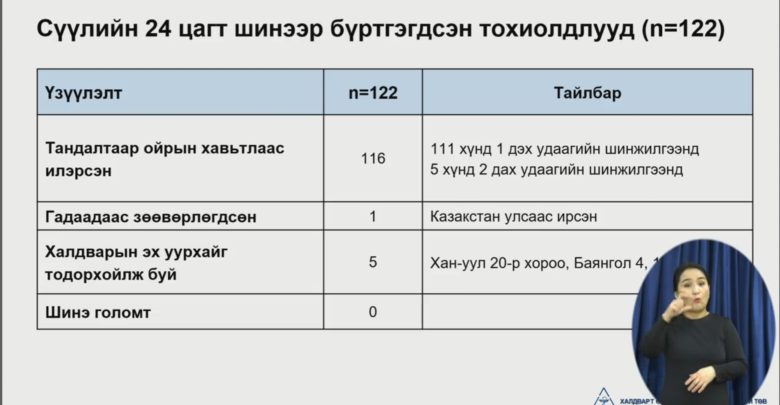 Нүүр /Focus/122 хүнээс коронавирусын халдвар илэрчээ FocusШинэ мэдээЭМЯ 122 хүнээс коронавирусын халдвар илэрчээ ТагКороновирус ЭМЯ