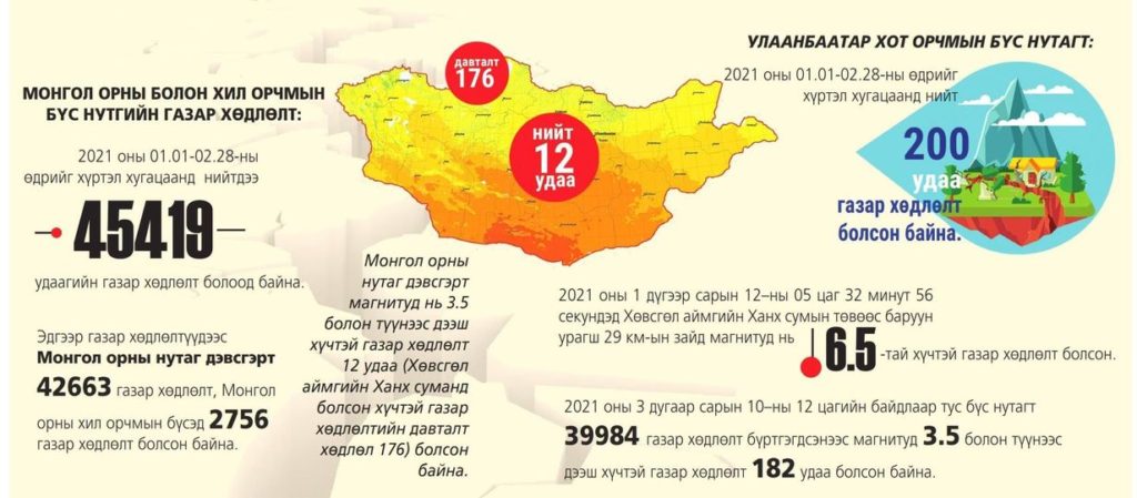 Үүний дагуу маргааш буюу 03 дугаар сарын 24-ны лхагва гарагт “Газар хөдлөлтийн аюулаас урьдчилан сэргийлэх, таниулах өдөр” тохиож байна.