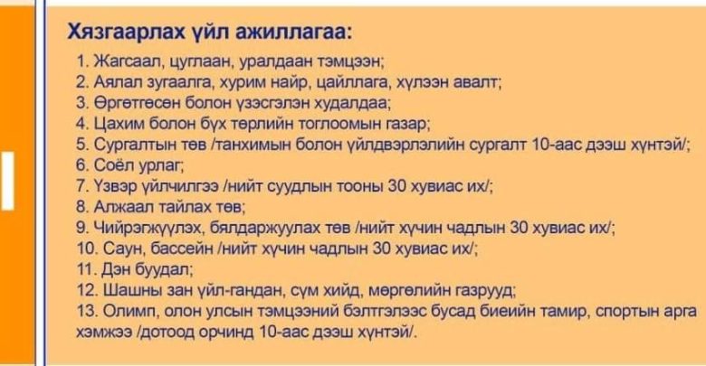Энэ хүрээнд аймгийн төвийн сургууль цэцэрлэгийн үйл ажиллагааг зогсоож, архи согтууруулах ундаа худалдан борлуулах, түүгээр үйлчлэхийг хориглолоо. Мөн төрийн болон үйлчилгээний байгууллагуудыг тусгай цагийн горимд шилжүүлэн ажиллуулахаар шийдвэрлэв. Иймд иргэд та бүхэн халдвар хамгааллын дэглэмийг нарийн баримтлан аль болох гэртээ байхыг аймгийн Онцгой комиссоос анхааруулж байна.