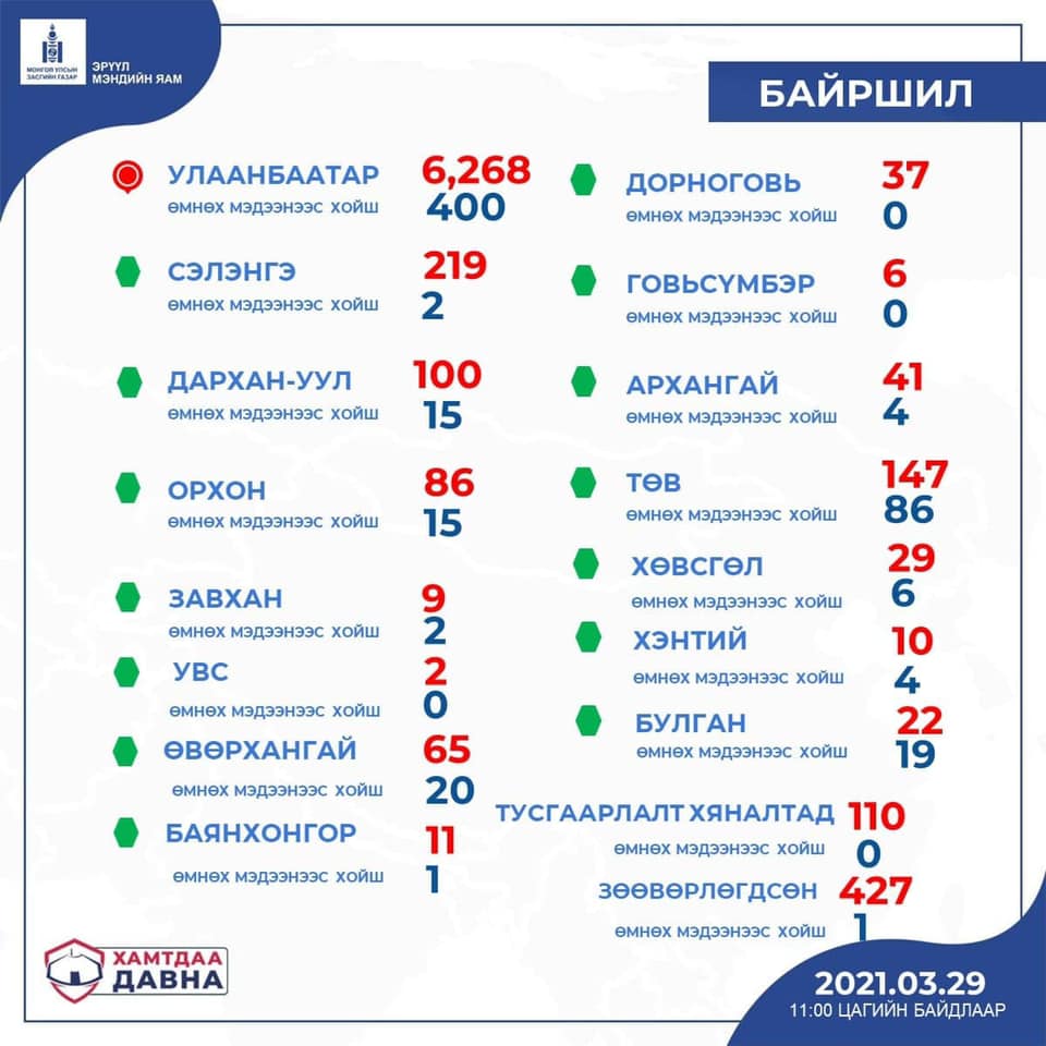 Энэ нь цар тахал гарснаас хойш Монгол Улсад нэг хоногийн дотор бүртгэгдсэн хамгийн олон тохиолдол болж байна.