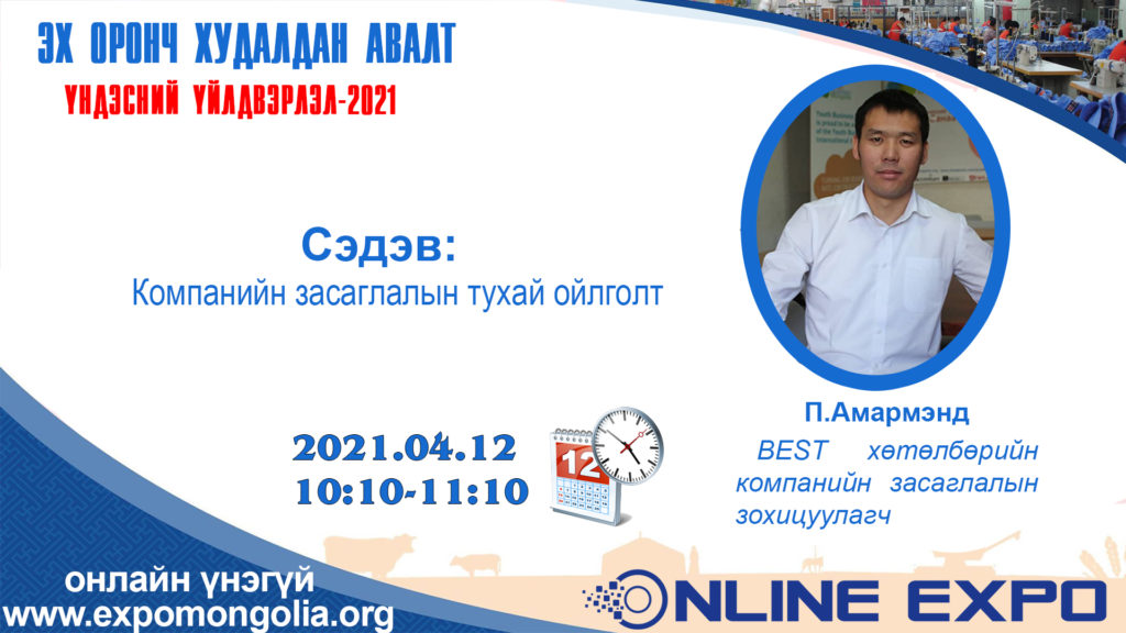 Дотоодын үйлдвэр эрхлэгчдийг төрийн худалдан авалтаар дэмжих, төрийн болон орон нутгийн өмчийн байгууллагуудтай холбох, бараа бүтээгдэхүүнийг танилцуулах зорилгоор “Эх оронч худалдан авалт – Үндэсний үйлдвэрлэл 2021” уламжлалт үзэсгэлэнг анх удаа цахим хэлбэрээр зохион байгуулж байна.