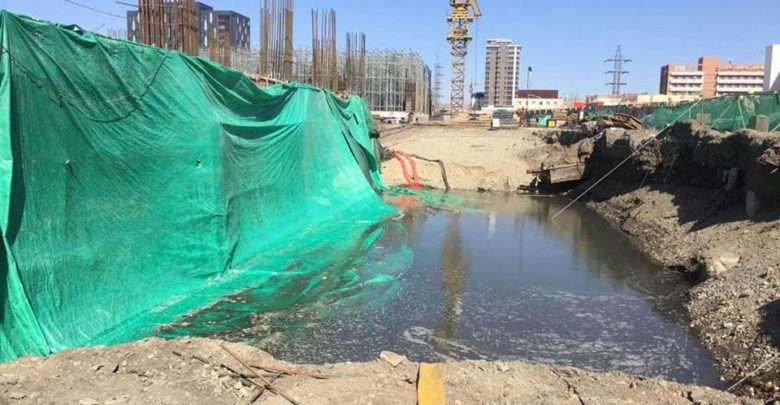Хөрсний ус 3.0м илэрч 3 блок барилгын сууриас их хэмжээний ус гарсанг Туул гол руу 500м шугам татаж зайлуулжээ. Одоогоор А, В блокын хөрсний усыг С блокын суурь руу цуглуулсан байна. Талбай дээр 60 гаруй хүн ажиллаж, байна. Тэдгээр иргэдэд халдвар хамгаалалын дэглэм, хөдөлмөрийн аюулгүй байдлыг хангуулж барилга угсралтын ажил зогсоох үүргийг НМХГ-аас өглөө.