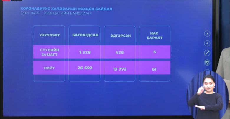 Нүүр /Focus/1328 шинэ тохиолдол бүртгэгдэж, 5 хүн нас баржээ FocusЭМЯ 1328 шинэ тохиолдол бүртгэгдэж, 5 хүн нас баржээ ТагКороновирус ЭМЯ